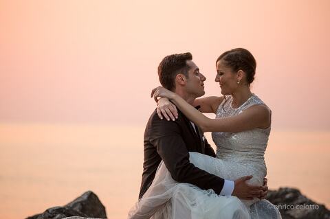 Il banchetto nuziale, presso il Palazzo del Capo a Cittadella del Capo, Cosenza, ci ha stupito; non appena siamo arrivati siamo andati a farci subito due passi al mare, era tutto perfetto, spiaggia deserta, un mare ed un cielo così rosa che sembrava messo li apposta per coronare questa giornata meravigliosa.