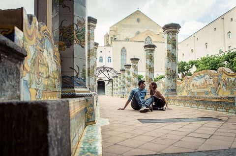 Piazza del Plebiscito, Palazzo Reale, Lungomare e Centro Storico, Il chiostro maiolicato della Basilica di Santa Chiara: in due giorni Ilaria e Giuseppe mi hanno fatto conoscere la loro Napoli e mi hanno fatto conoscere anche loro;